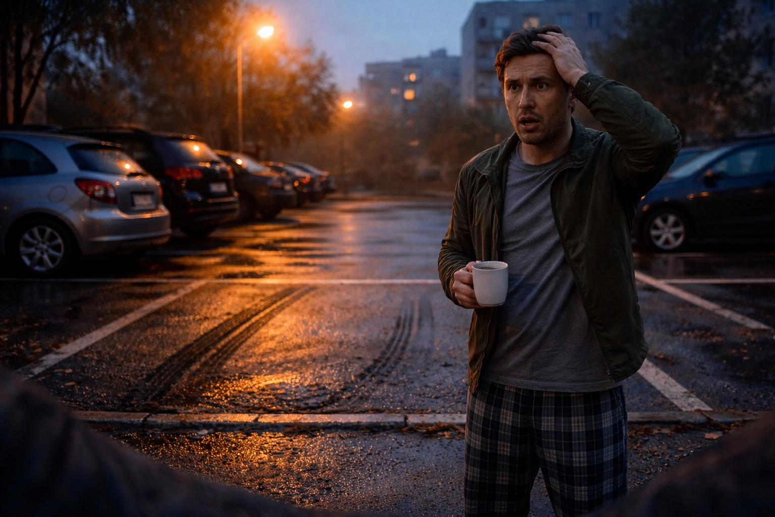 Rano, o 7:15, Tomek wyszedł z domu z kubkiem kawy w ręce. Miejsce parkingowe było puste. Przez pierwszą minutę myślał, że pomylił miejsca. Potem poczuł, jak krew odpływa mu z twarzy. Zaczął gorączkowo przeszukiwać parking — może zaparkował gdzie indziej? Może ktoś poprosił o przestawienie? Po dziesięciu minutach bezcelowego chodzenia zadzwonił na policję.