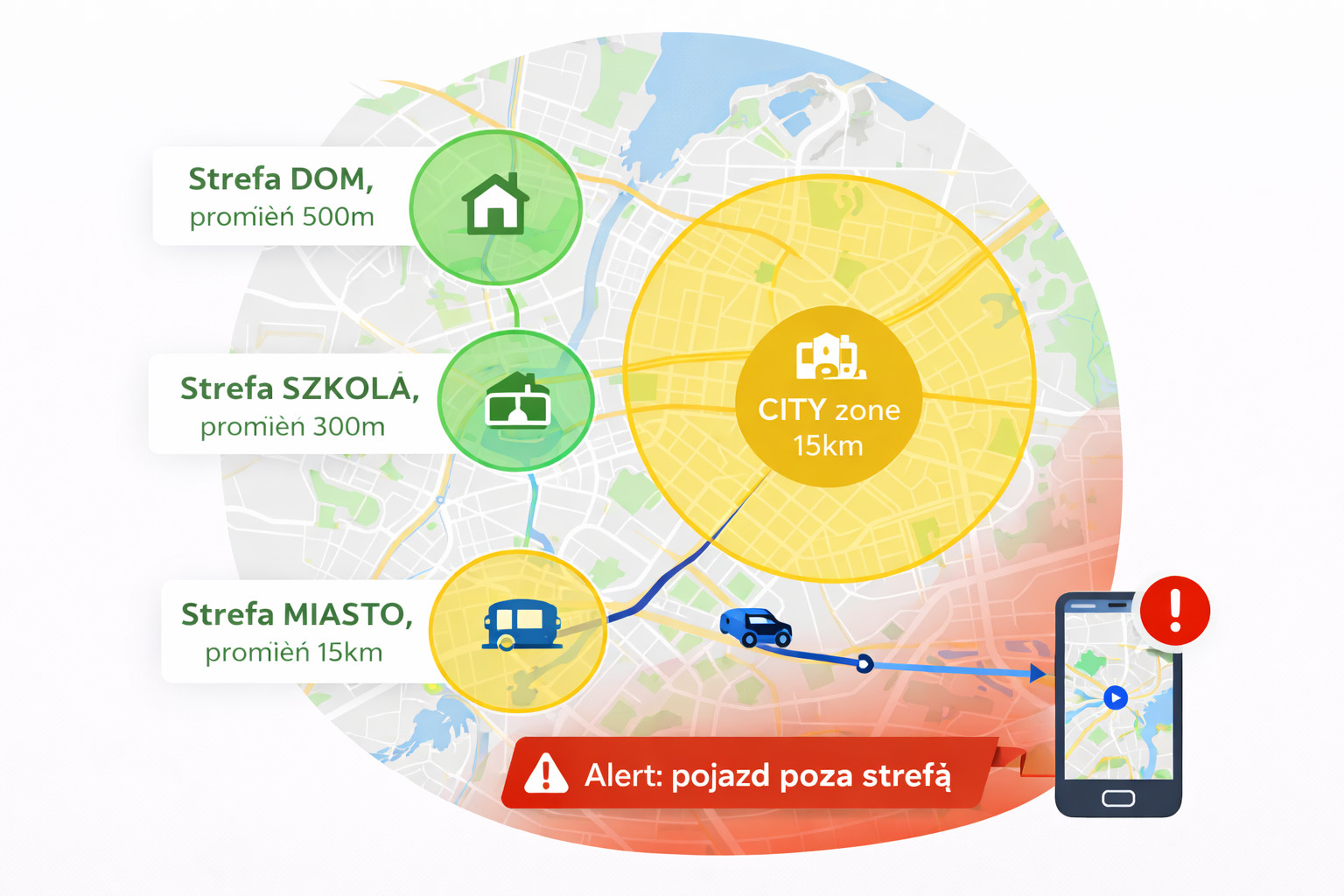 LocaCar pozwolił też ustawić geofencing — strefy wirtualne wokół domu i szkoły. Gdy auto wyjeżdża poza tę strefę, rodzice dostają cichy alert. Nie muszą ciągle wpatrywać się w mapę — wystarczy, że zerknęli, gdy dostali powiadomienie, i wiedzą, że Kajetan pojechał gdzieś dalej niż zwykle.