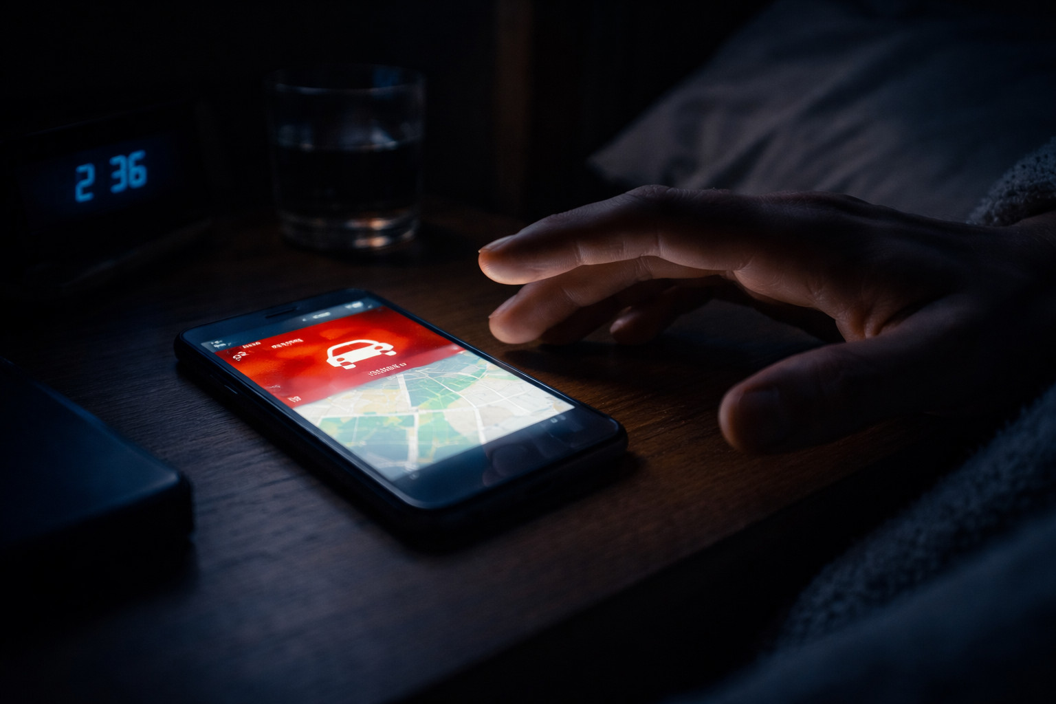Tomek budzi się od wibracji telefonu. Widzi alert. Otwiera aplikację i na mapie śledzi swoje auto w czasie rzeczywistym. Samochód właśnie wyjechał z parkingu i jedzie ulicą Puławską w kierunku centrum. Tomek natychmiast dzwoni na 112. Podaje dokładną lokalizację pojazdu — ulica, numer, kierunek jazdy. Aktualizuje dyżurnego co kilkanaście sekund. Patrol przechwytuje auto po ośmiu minutach na Moście Poniatowskiego.